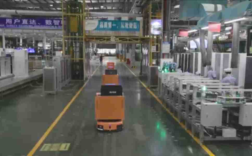 为车载冰箱物流配送打造的智能解决方案,,,包含产中物流通过潜伏举升AMR搬运至线边,,,,产后成品物流智能仓储,,,流程包含产中物流智能齐套入库,,,线边安灯叫料AMR智能配送至线边,,,,成品入库、、、出库,,,通过无人堆高车机器人,,智能仓储管理替代人工作业管理,,,实现更高存储、、、、更高效率、、、更具柔性化的解决方案。。。